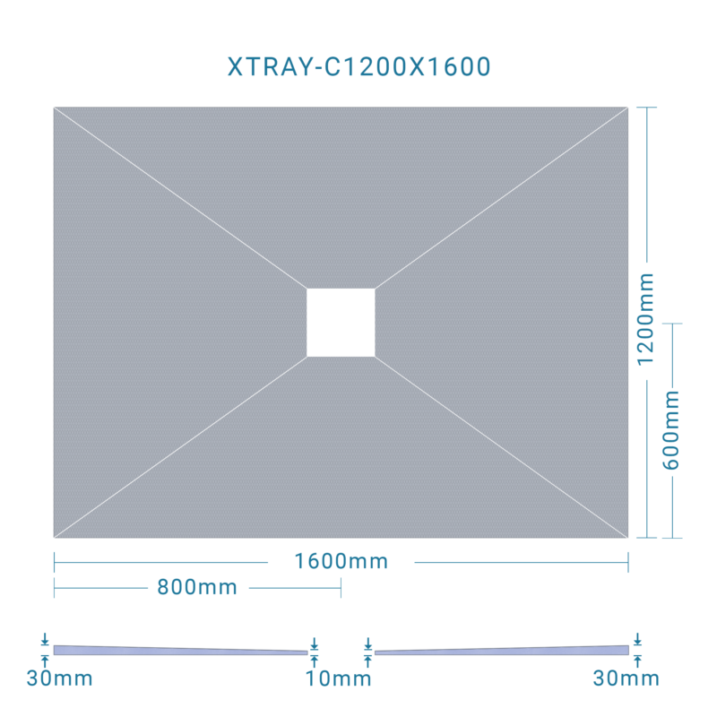 Shower Base Centre Drain 1200x1600x30mm